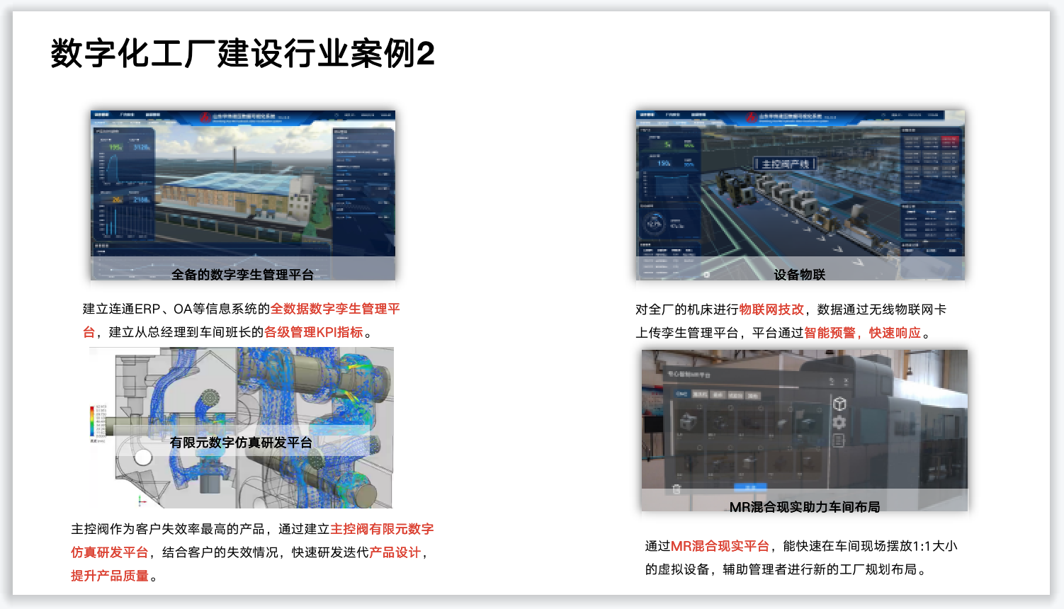 1.通过物联网硬件对全厂的机床进行物联网技改,让机床的孤岛数据变为有用的管理资源,让设备会“说话” ,会求助。
